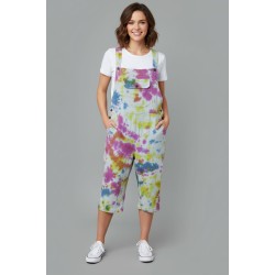 Casual Linen-Blend Tie-Dye Short Overalls. Combining a playful, multi-colored splash pattern with a comfortable, breathable fabric, these cropped overalls are your new go-to for festival fun, beach trips, or simply relaxing on sunny days. Crafted from a soft, lightweight linen-blend fabric, these women's dungarees offer exceptional comfort and a relaxed, easy fit that's perfect for warm weather. The unique hand-dyed tie-dye pattern ensures every piece is one-of-a-kind. Featuring adjustable sh..